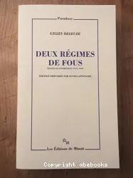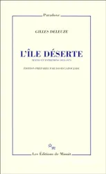 Gilles Deleuze, Auteur ; David Lapoujade, Éditeur scientifique | Paris : les Éd. de Minuit | Paradoxe (Paris), ISSN 1243-1907 | 2003Ce second volume fait suite à L'Ile déserte et autres textes. Il regroupe l'ensemble des textes rédigés entre 1975 et 1995. La plupart d'entre eux suivent le double rythme de l'actualité (les terrorismes italiens et allemand, la question palesti[...]![]()